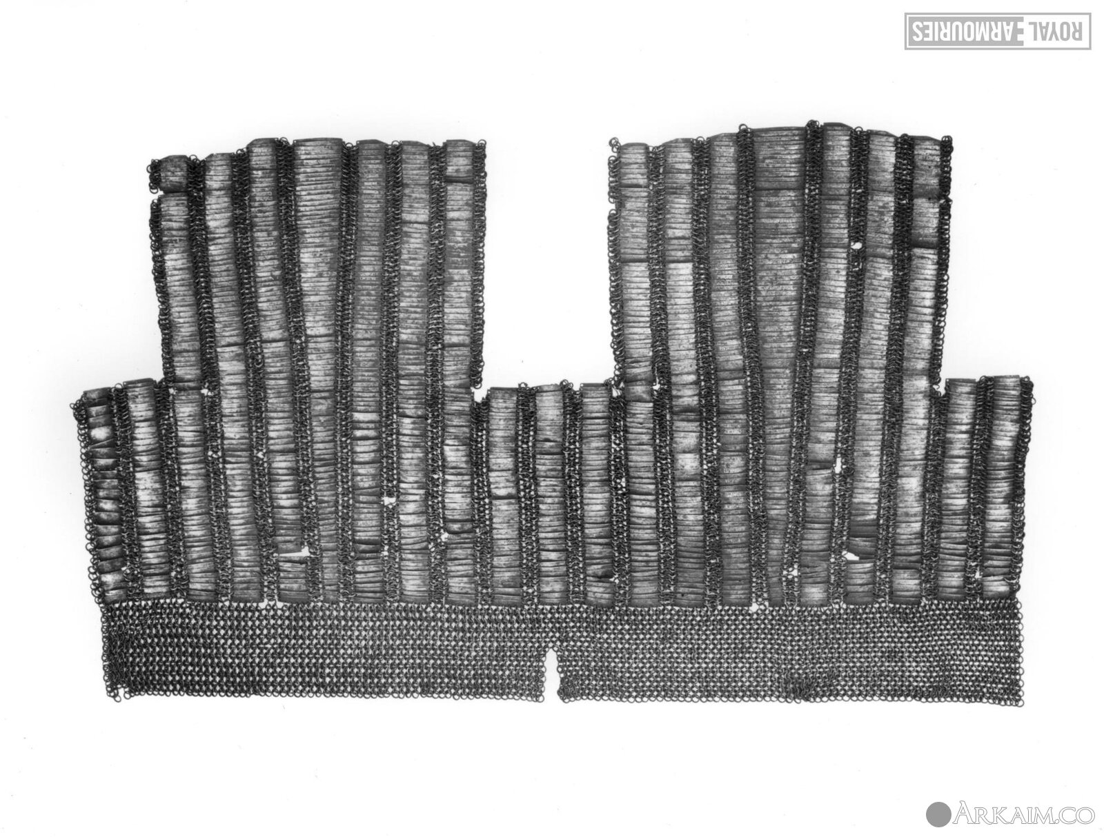 Кольчужная перемычка выполнена из трех рядов колец. Подол состоит из 21 ряда колец. На левом боку подол имеет небольшой, на 10 колец, разрез, вероятно, для удобства посадки всадника в седле. Все кольца – круглого сечения, клепанные на гвоздь.