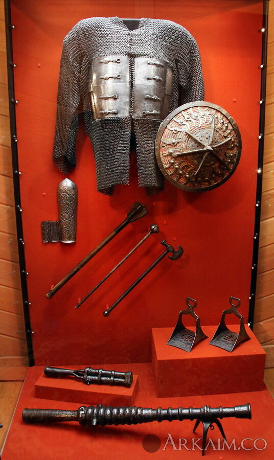 Этот юшман весьма похож на https://arkaim.co/ga...4-d0b3d0b8d0bc/. Особенно бросаются в глаза сходство пряжек у обоих доспехов, а также конструкция груди.