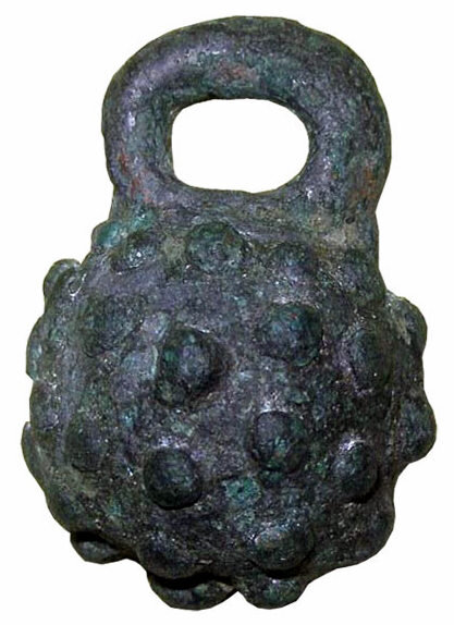 Кистень шаровидный с горошковидными выпуклостями, тип 2А по Кирпичникову, 12-13 вв.