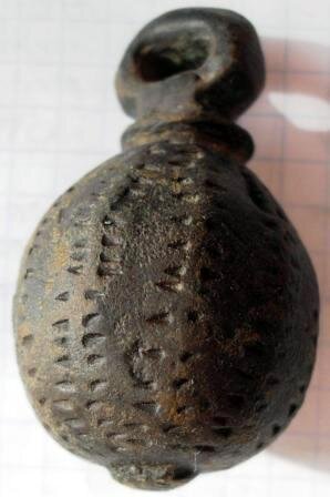 Кистень шаровидный с ребрами и насечками, тип 2 по Кирпичникову, 12-13 вв.