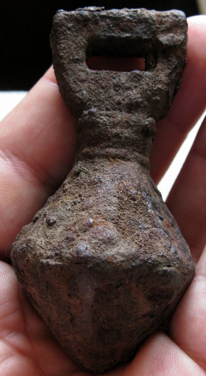 Кистень биконической формы с квадратным ушком, 70 мм, тип 6 по Кирпичникову, 12-13 вв.