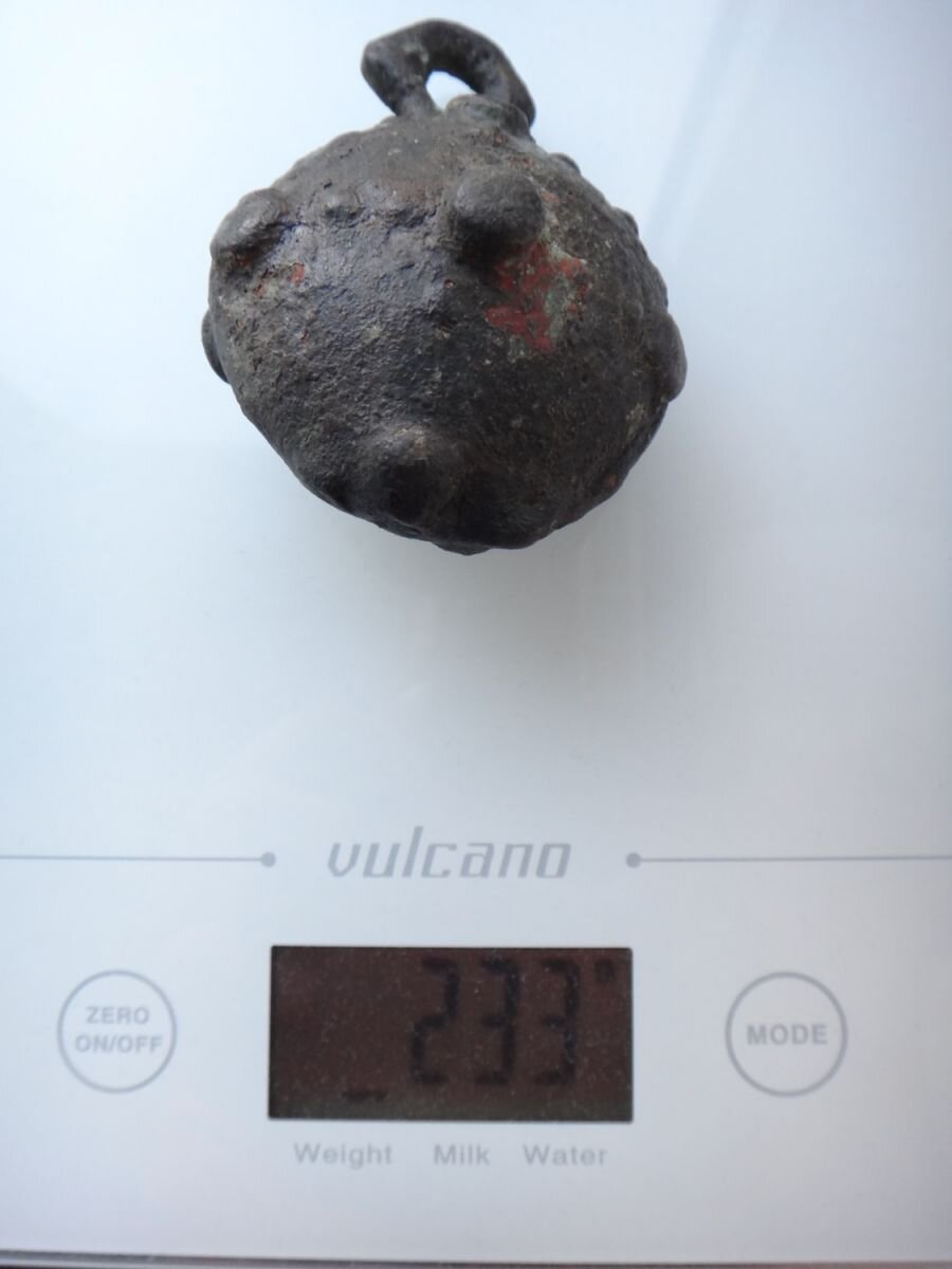 Кистень шаровидный с горошковидными выпуклостями, 233 гр., тип 2А по Кирпичникову, 12-13 вв.