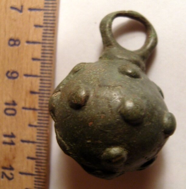 Кистень шаровидный с горошковидными выпуклостями, тип 2А по Кирпичникову, 12-13 вв.