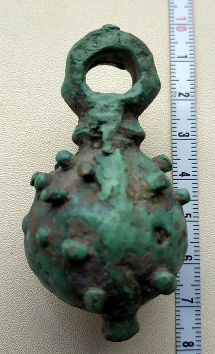 Кистень шаровидный с горошковидными выпуклостями, 167,5 гр., тип 2А по Кирпичникову, 12-13 вв. Сумская обл.