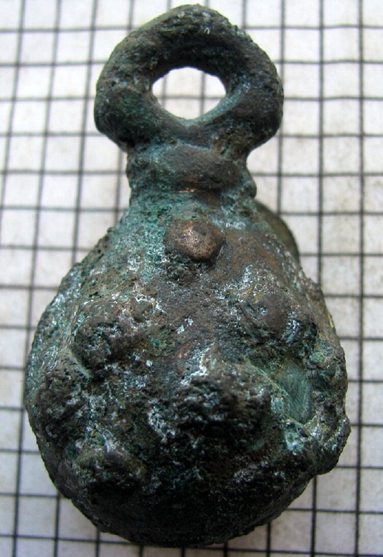 Кистень шаровидный с горошковидными выпуклостями, 135,5 гр., тип 2А по Кирпичникову, 12-13 вв.
