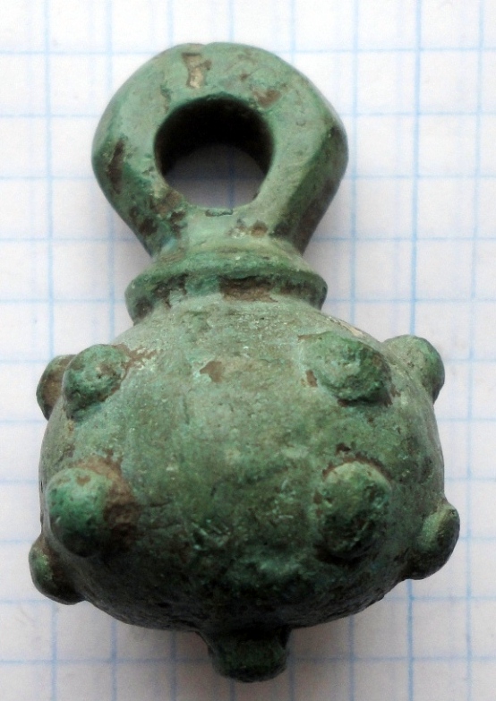 Кистень шаровидный с горошковидными выпуклостями, 106,22 гр., тип 2А по Кирпичникову, 12-13 вв.