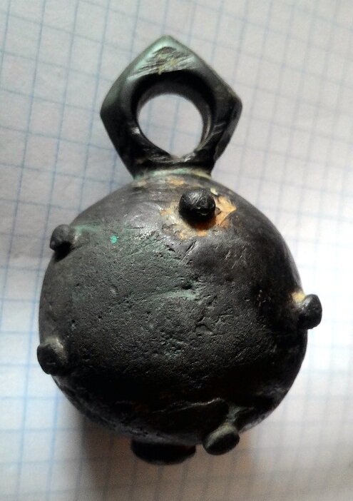 Кистень шаровидный с горошковидными выпуклостями, 220 гр., тип 2А по Кирпичникову, 12-13 вв.