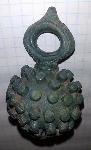 Кистень шаровидный с горошковидными выпуклостями, 153,7 гр., тип 2А по Кирпичникову, 12-13 вв.