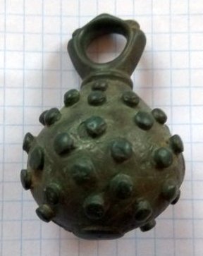 Кистень шаровидный с горошковидными выпуклостями, 107 гр., тип 2А по Кирпичникову, 12-13 вв. Черниговская обл.