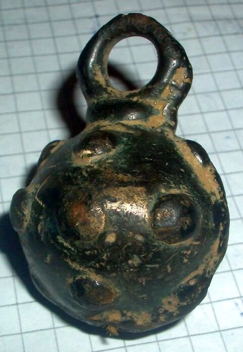 Кистень шаровидный с горошковидными выпуклостями, 60,72 гр., тип 2А по Кирпичникову, 12-13 вв.