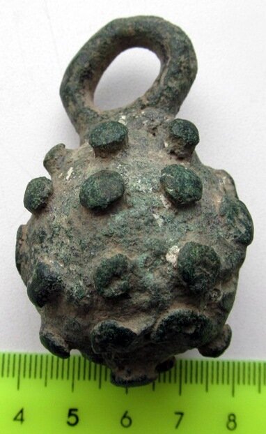 Кистень шаровидный с горошковидными выпуклостями, 185 гр., тип 2А по Кирпичникову, 12-13 вв. Беларусь