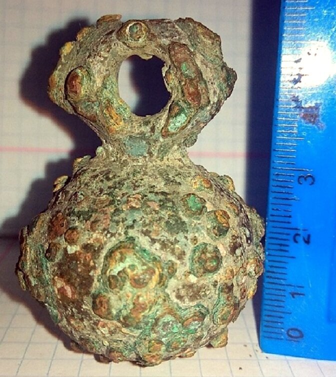 Кистень шаровидный с горошковидными выпуклостями, 206 гр., тип 2А по Кирпичникову, 12-13 вв. Харьковская обл.