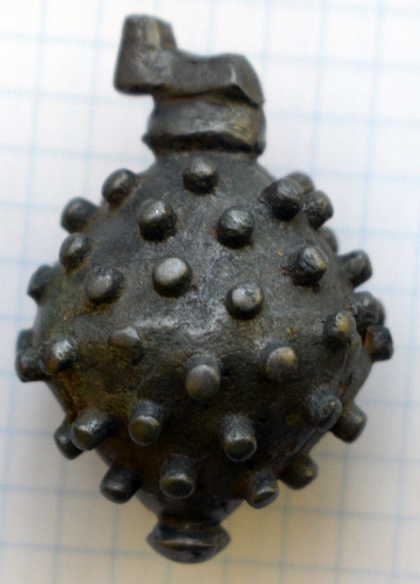 Кистень шаровидный с горошковидными выпуклостями, тип 2А по Кирпичникову, 12-13 вв.