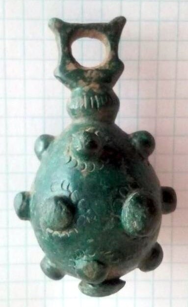 Кистень шаровидный с горошковидными выпуклостями, 190 гр., тип 2А по Кирпичникову, 12-13 вв. Смоленская обл.