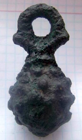 Кистень шаровидный с горошковидными выпуклостями, 155 гр., тип 2А по Кирпичникову, 12-13 вв. Черниговская обл.