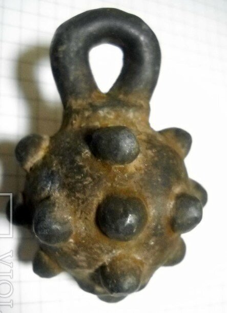 Кистень шаровидный с горшковидными выпуклостями, свинец, 296 гр., тип 2А по Кирпичникову, 12-13 вв.