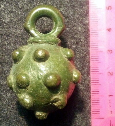 Кистень шаровидный с горшковидными выпуклостями, 100 гр., тип 2А по Кирпичникову, 12-13 вв. Черниговская обл.