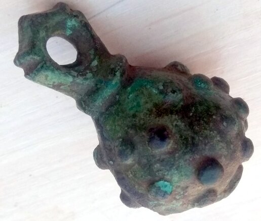 Кистень шаровидный с горшковидными выпуклостями, тип 2А по Кирпичникову, 12-13 вв. Киевская обл.