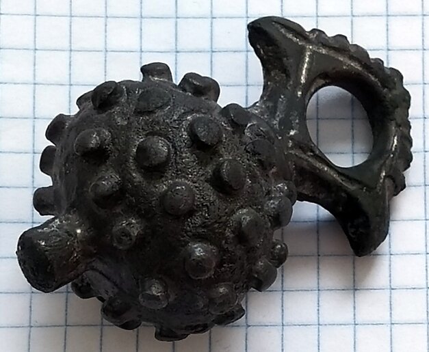 Кистень шаровидный с горошковидными выпуклостями, 174 гр., тип 2А по Кирпичникову, 12-13 вв. Киевская обл.