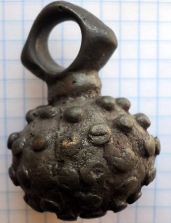 Кистень шаровидный с горошковидными выпуклостями, 148 гр., тип 2А по Кирпичникову, 12-13 вв.