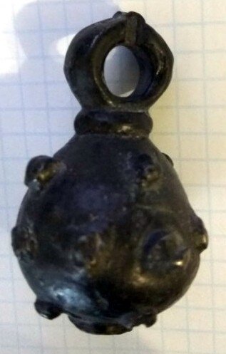 Кистень шаровидный с горошковидными выпуклостями, 138 гр., тип 2А по Кирпичникову, 12-13 вв.
