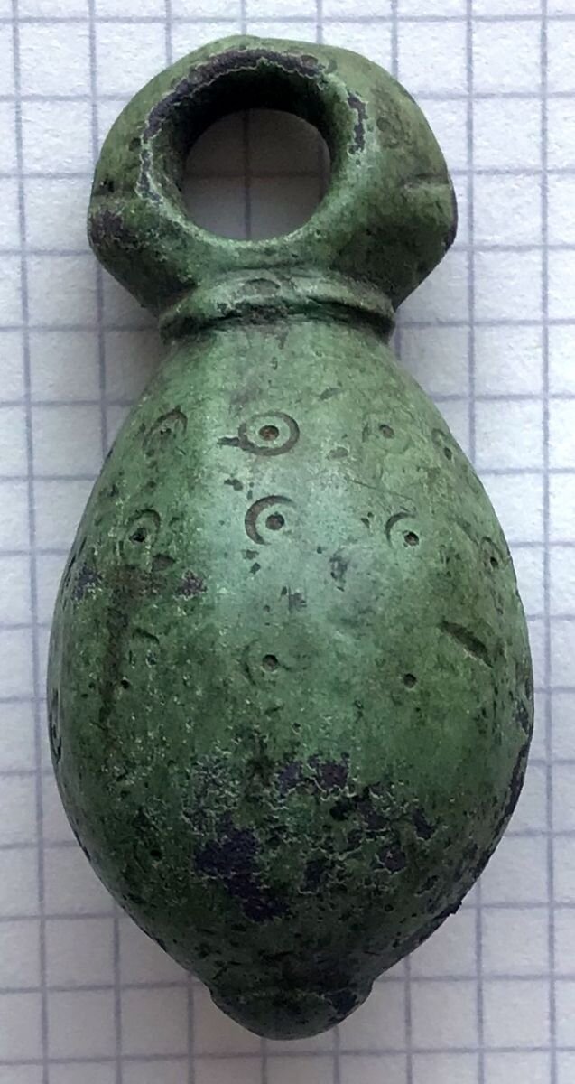 Кистень грушевидный граненый с циркульным орнаментом, 190,77 гр., тип 2 по Кирпичникову, вторая половина 10 - 13 вв.