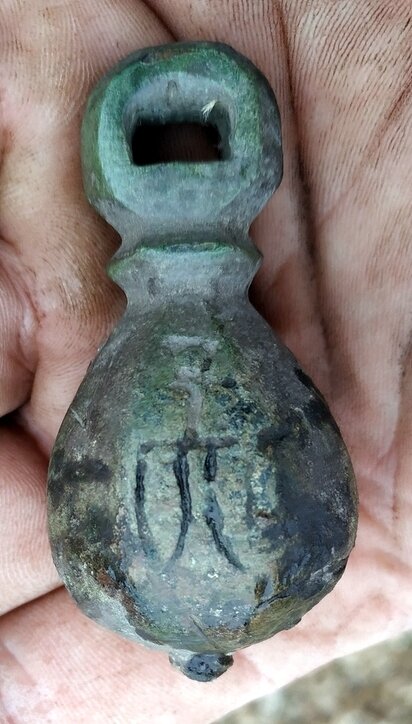 Кистень грушевидный с граффити в виде княжеского знака, 197 гр., тип 2 по Кирпичникову, вторая половина 10 - 13 вв. (фото 1)