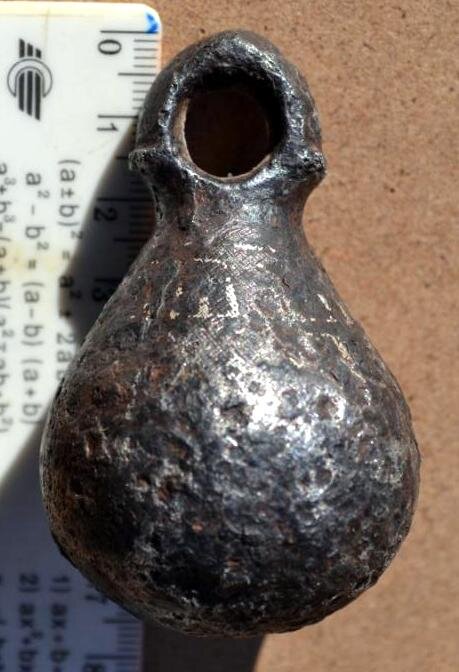 Кистень грушевидный железный с серебрянной всечкой, 327 гр., тип 2 по Кирпичникову, вторая половина 10 - 13 вв. Хмельницкая обл. (фото 1)