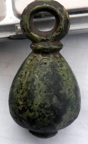 Кистень грушевидный граненый с циркульным орнаментом, 117,3 гр., тип 2 по Кирпичникову, вторая половина 10 - 13 вв.