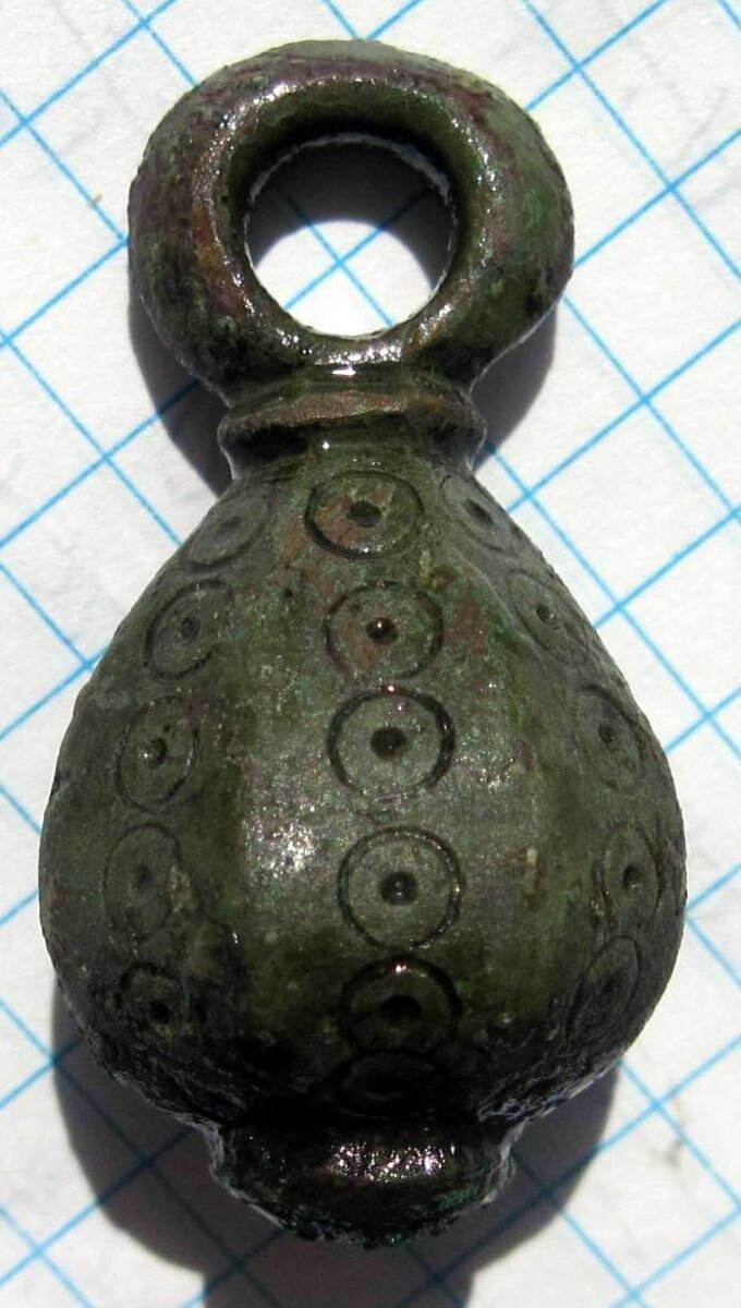 Кистень грушевидный граненый с циркульным орнаментом, 46,5 гр., тип 2 по Кирпичникову, вторая половина 10 - 13 вв. Черниговская обл.
