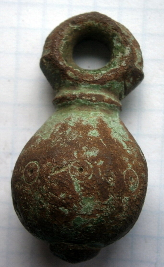 Кистень шаровидный с циркульным орнаментом, тип 2 по Кирпичникову, вторая половина 10 - 13 вв.