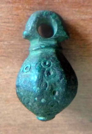 Кистень шаровидный граненый с циркульным орнаментом, 46,34 гр., тип 2 по Кирпичникову, вторая половина 10 - 13 вв.