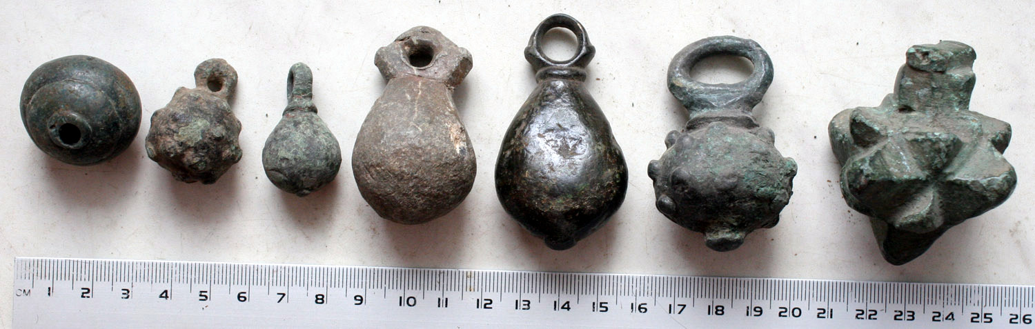 3,4,6 - кистень шаровидный, тип 2 по Кирпичникову, вторая половина 10 - 13 вв.