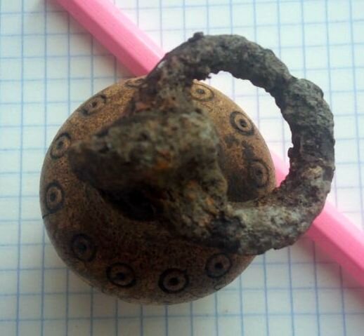 Кистень, кость/железо, 76 гр., 1 тип по Кирпичникову, 10 - 13 вв. (фото 2)