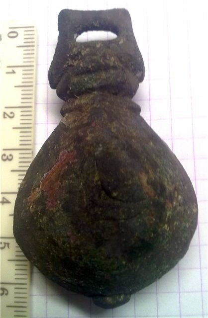 Кистень круглый уплощенный (с тамгой?), тип 3А по Кирпичникову, 12-13 вв.