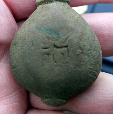 Кистень круглый уплощенный (с тамгой?), тип 3А по Кирпичникову, 12-13 вв. (фото 2)