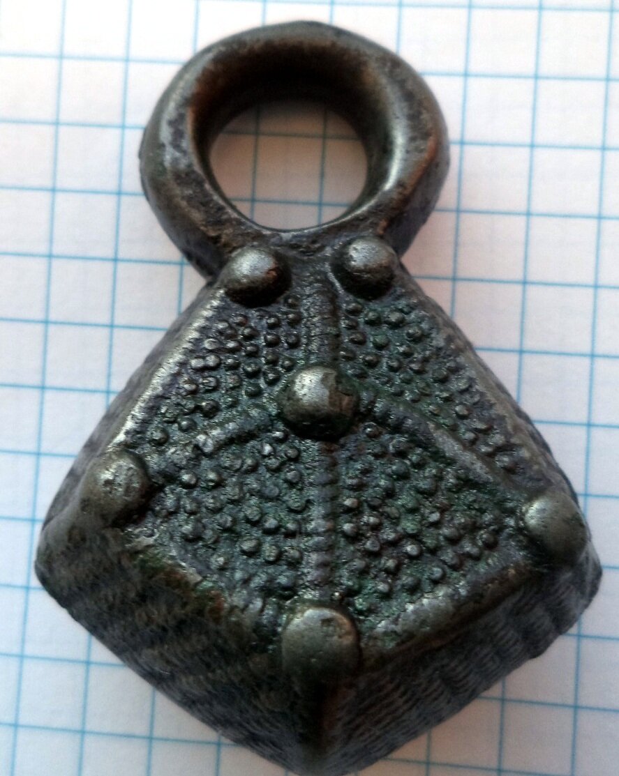 Кистень граненный уплощенный украшенный, тип 3 по Кирпичникову, 12-13 вв. (фото 1)