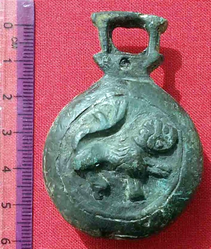 Кистень круглый уплощенный с изображением льва, тип 3А по Кирпичникову, 12-13 вв. (фото 2)