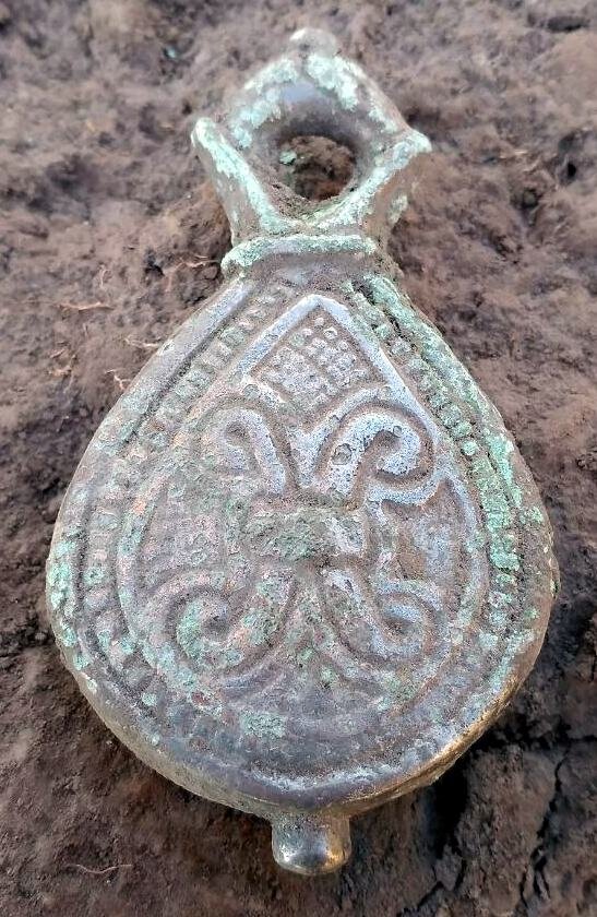 Кистень круглый уплощенный орнаментированный, 195 гр., тип 3А по Кирпичникову, 12-13 вв. Сумская обл. г. Путивль (фото 2)