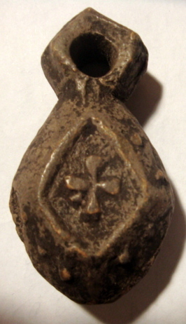 Кистень уплощенный с геральдическими знаками, 184,2 гр., тип 3А по Кирпичникову, 12-13 вв. (фото 2)