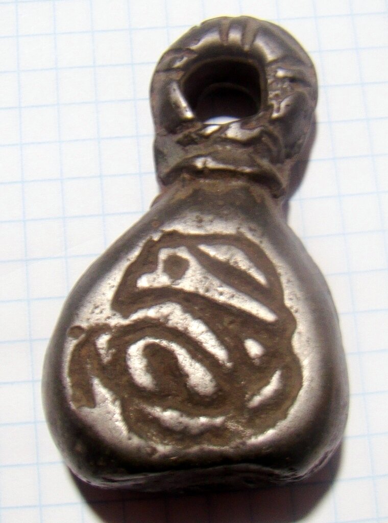 Кистень круглый уплощенный с геральдическими знаками, 131 гр., тип 3А по Кирпичникову, 12-13 вв. Волынская обл. (фото 1)