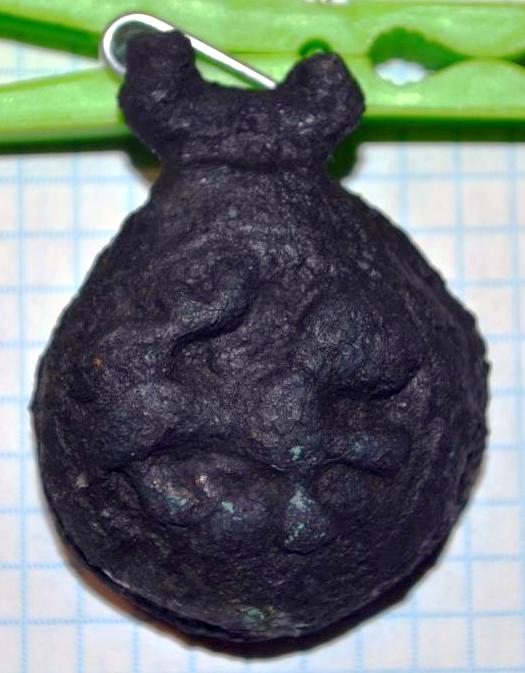 Кистень круглый уплощенный с геральдическими знаками, 80 гр., тип 3А по Кирпичникову, 12-13 вв. (фото 2)