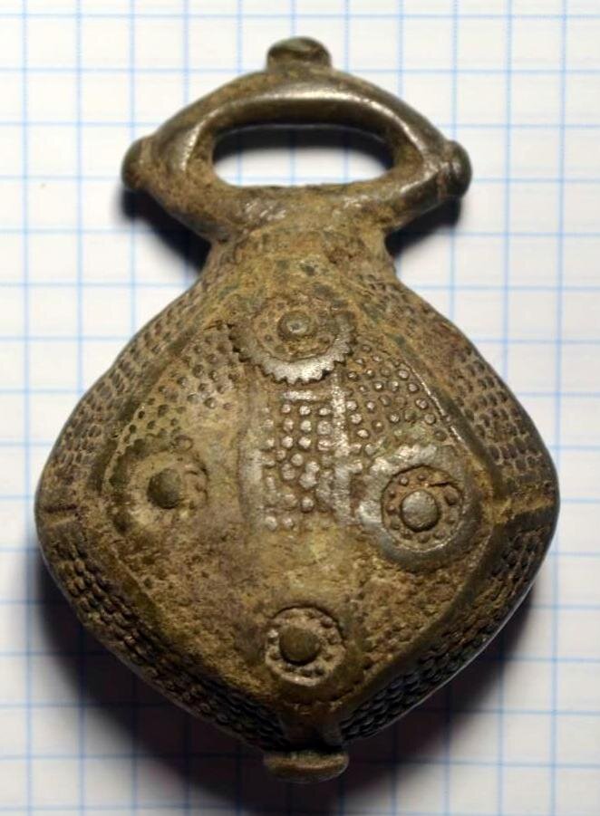 Кистень круглый уплощенный с орнаментом, 148 гр., тип 3А по Кирпичникову, 12-13 вв. (фото 1)
