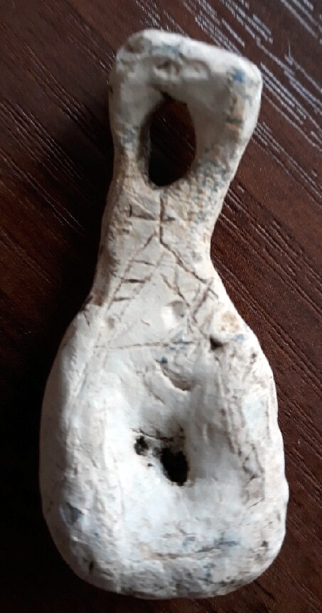 Кистень грушевидный уплощенный с изобращением креста, тип 3А по Кирпичникову, 12-13 вв. (фото 2)
