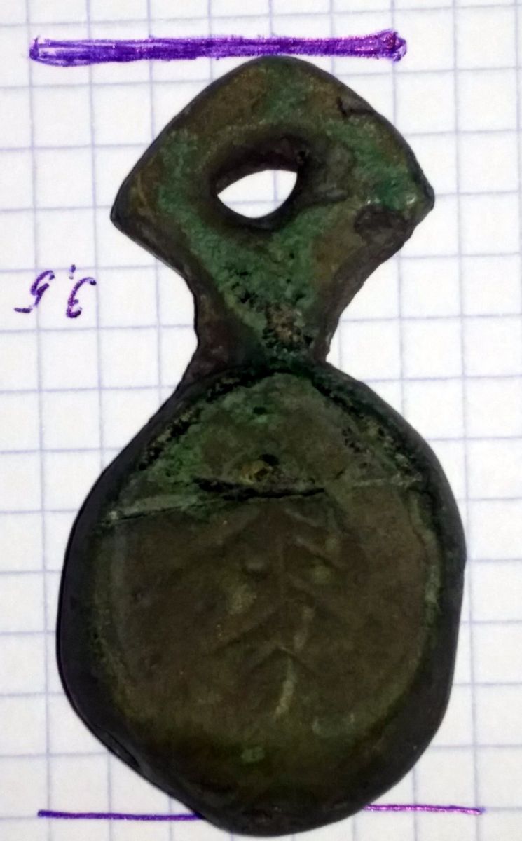 Кистень круглый уплощенный с геральдическими знаками?, тип 3А по Кирпичникову, 12-13 вв. (фото 1)