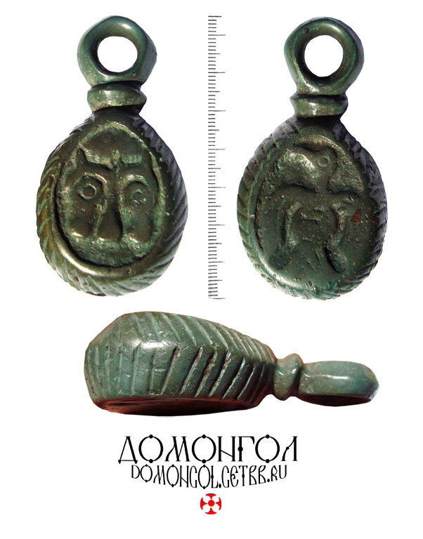 Кистень круглый уплощенный с геральдическими знаками, тип 3А по Кирпичникову, 12-13 вв.
