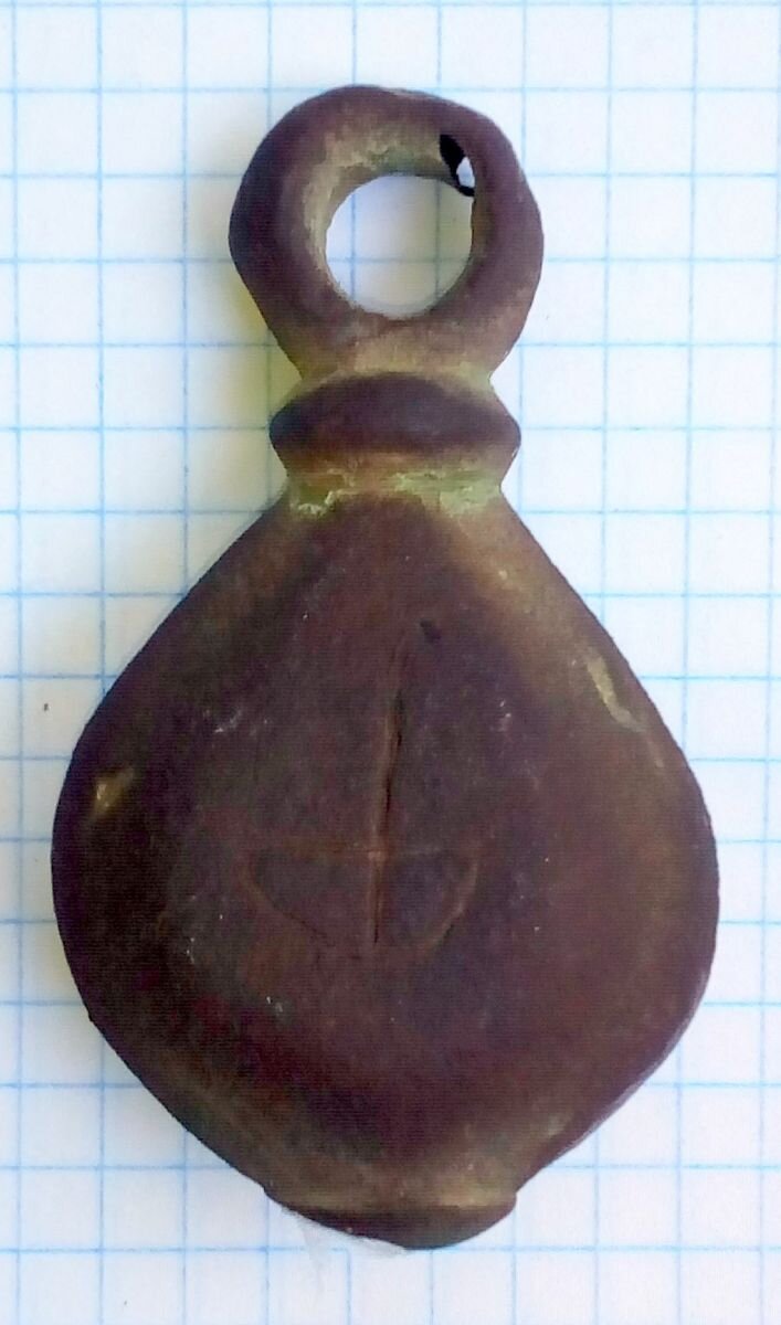 Кистень круглый уплощенный с графити креста, тип 3А по Кирпичникову, 12-13 вв. Винницкая обл. (фото 1)