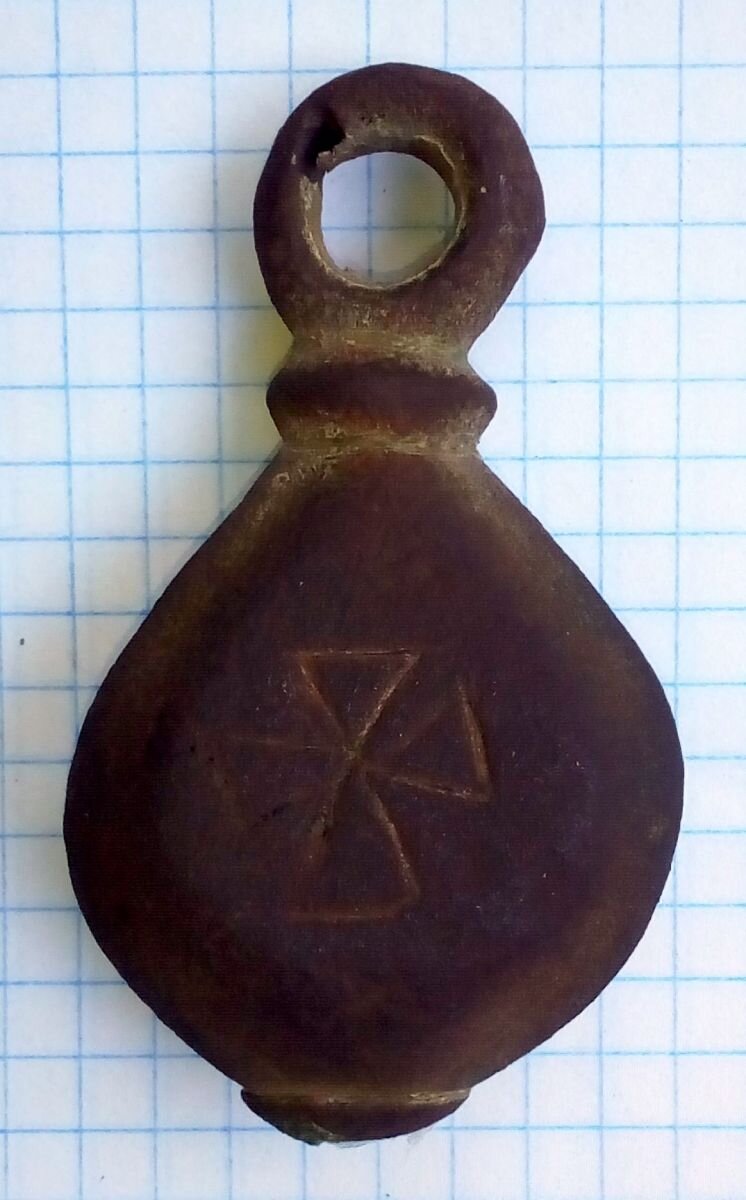 Кистень круглый уплощенный с графити креста, тип 3А по Кирпичникову, 12-13 вв. Винницкая обл. (фото 2)