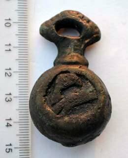 Кистень круглый уплощенный с геральдическими знаками, тип 3А по Кирпичникову, 12-13 вв. Ивано-Франковская обл. (фото 1)