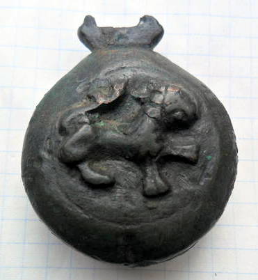Кистень круглый уплощенный с изображением льва, 97,7 гр., тип 3А по Кирпичникову, 12-13 вв. Ровенская обл. (фото 2)